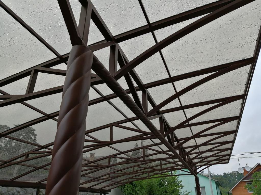 Выполнили изготовление металлической конструкции для трех автомобилей, продекорированны колоны и низ большой фермы